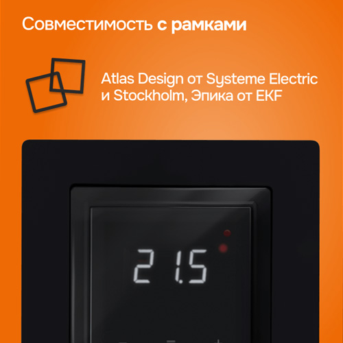 - рамка для терморегулятора, 2 адаптера для рамок Atlas Design, Эпика, Стокгольм, BRITE, Unica, Sedna и других с размером лицевой панели 45х45 и 55х55 мм;