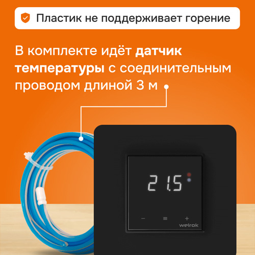 - подключаемая нагрузка теплого пола: 3 Квт, ток 16 А