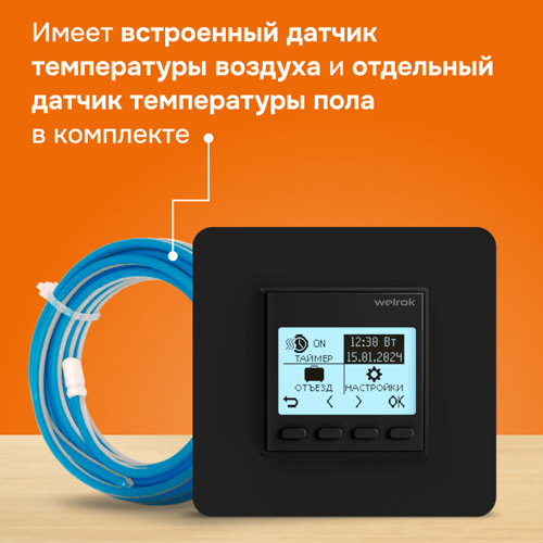 - тип датчика температуры: датчик температуры пола и воздуха